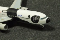 作品には旅客機モデルの華やかさをイメージした艶有り塗装を施し、デカールはクリアー塗装で保護しております。