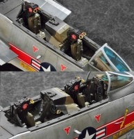 コクピット内は計器板や座席などを細かく塗り分け、シートベルトなども再現しております。(写真ではキャノピーを外しておりますが、実際は接着固定しております)