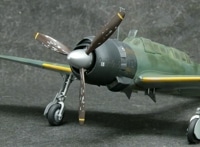 機首周りのクローズアップ。プロペラの色剥げ表現と、機体色のグラデーションが見所です。
